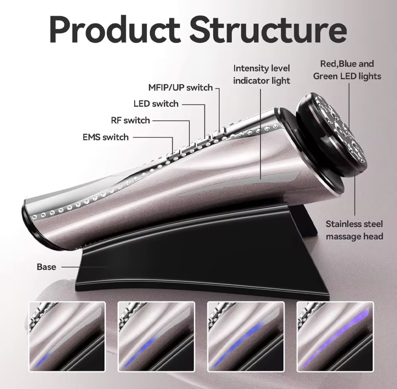 - Advanced Technology: Combines RF, EMS, LED light, and electroporation for comprehensive skin care.